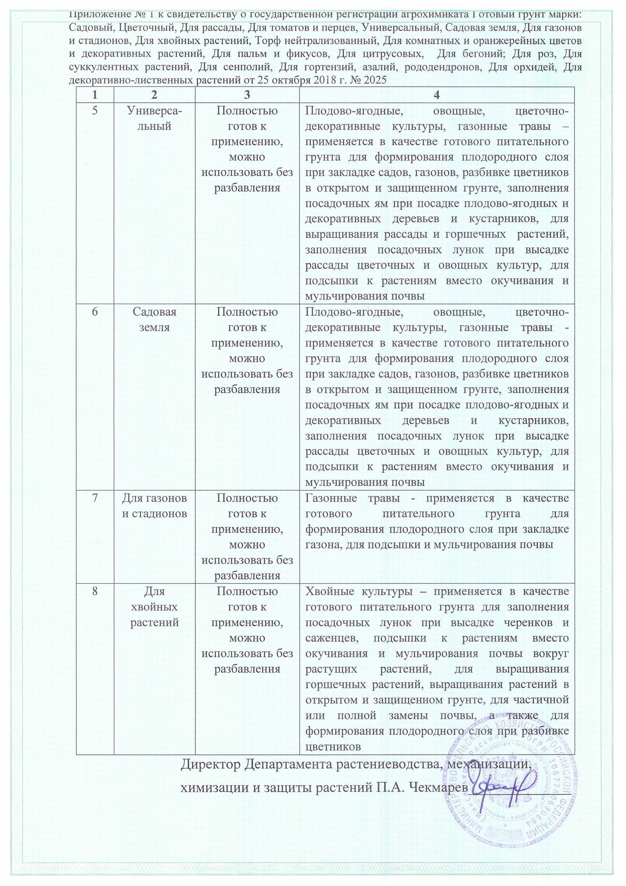 Государственная регистрация - №513-14-2025-1 от 25.10.18 до 24.10.28 выдана МСХ РФ, Сертификация-информационное письмо №02600 от 18.03.23 выдана ОС продукции ООО "Рус-Тест"