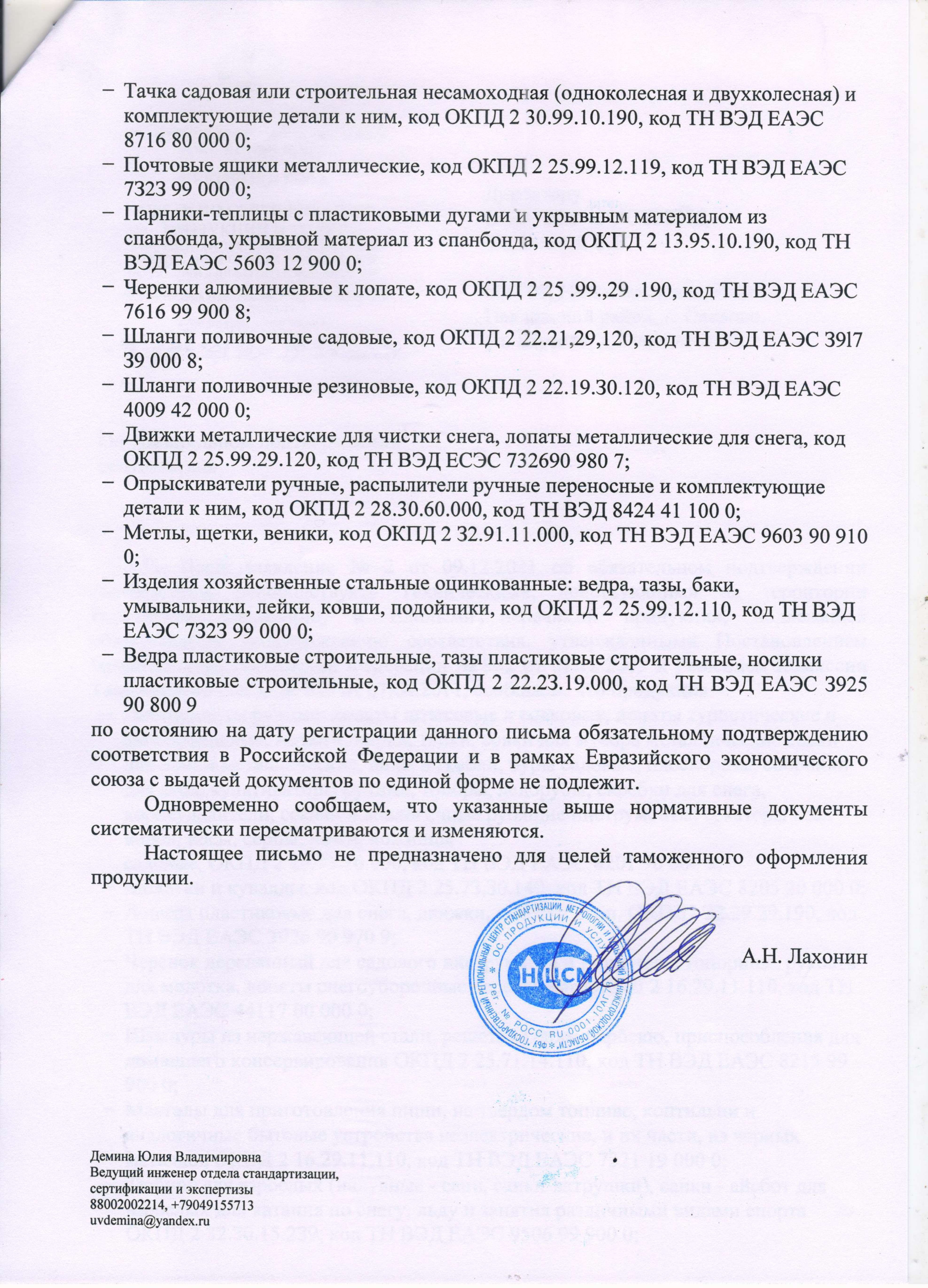 Сертификация - информационное письмо №43/АГ 78/173 от 13.12.21 выдано ФБУ "Государственный региональный центр стандартизации, метрологии и испытаний в Нижегородской обл."