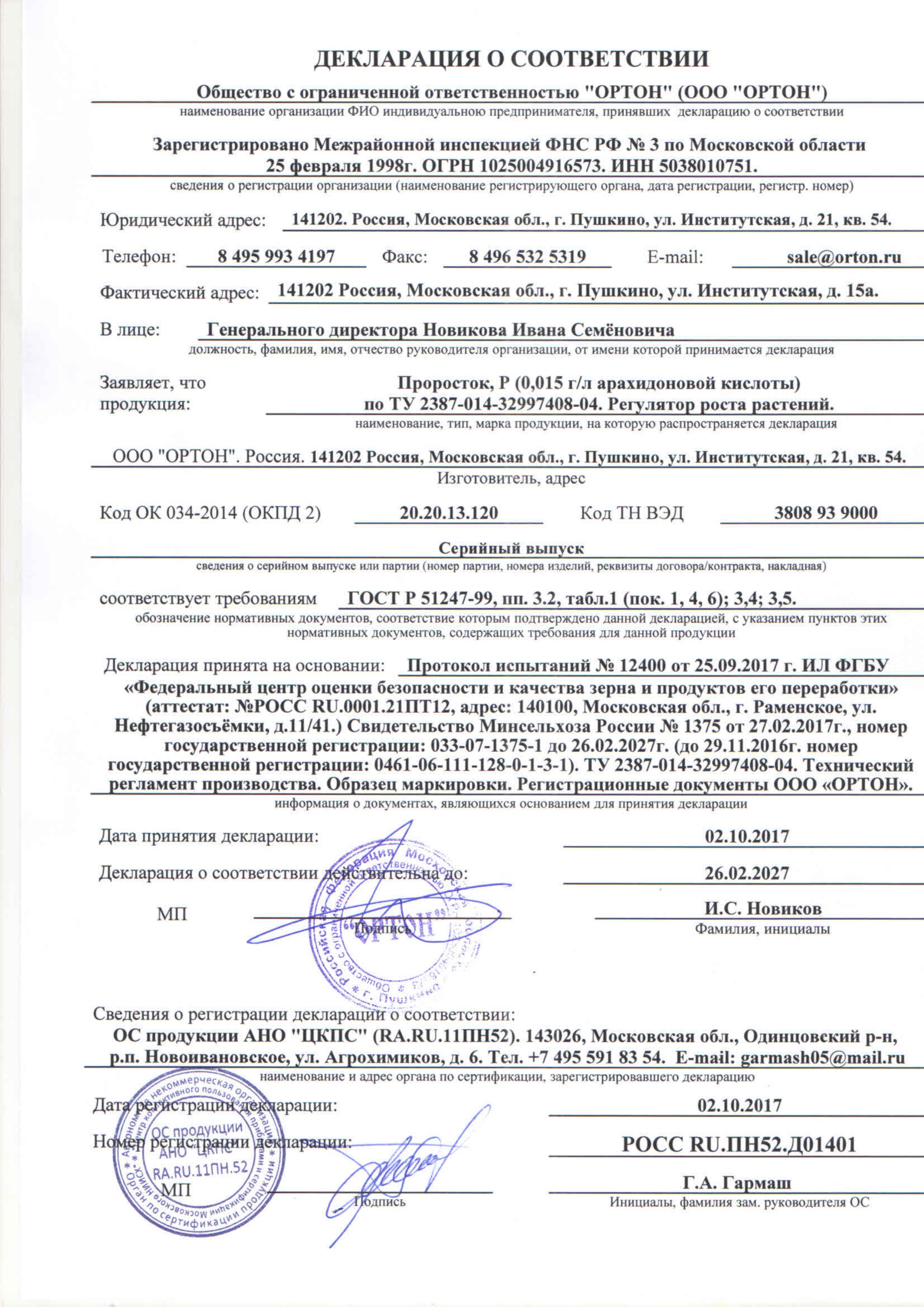 повышает энергию прорастания семян, улучшает их всхожесть;