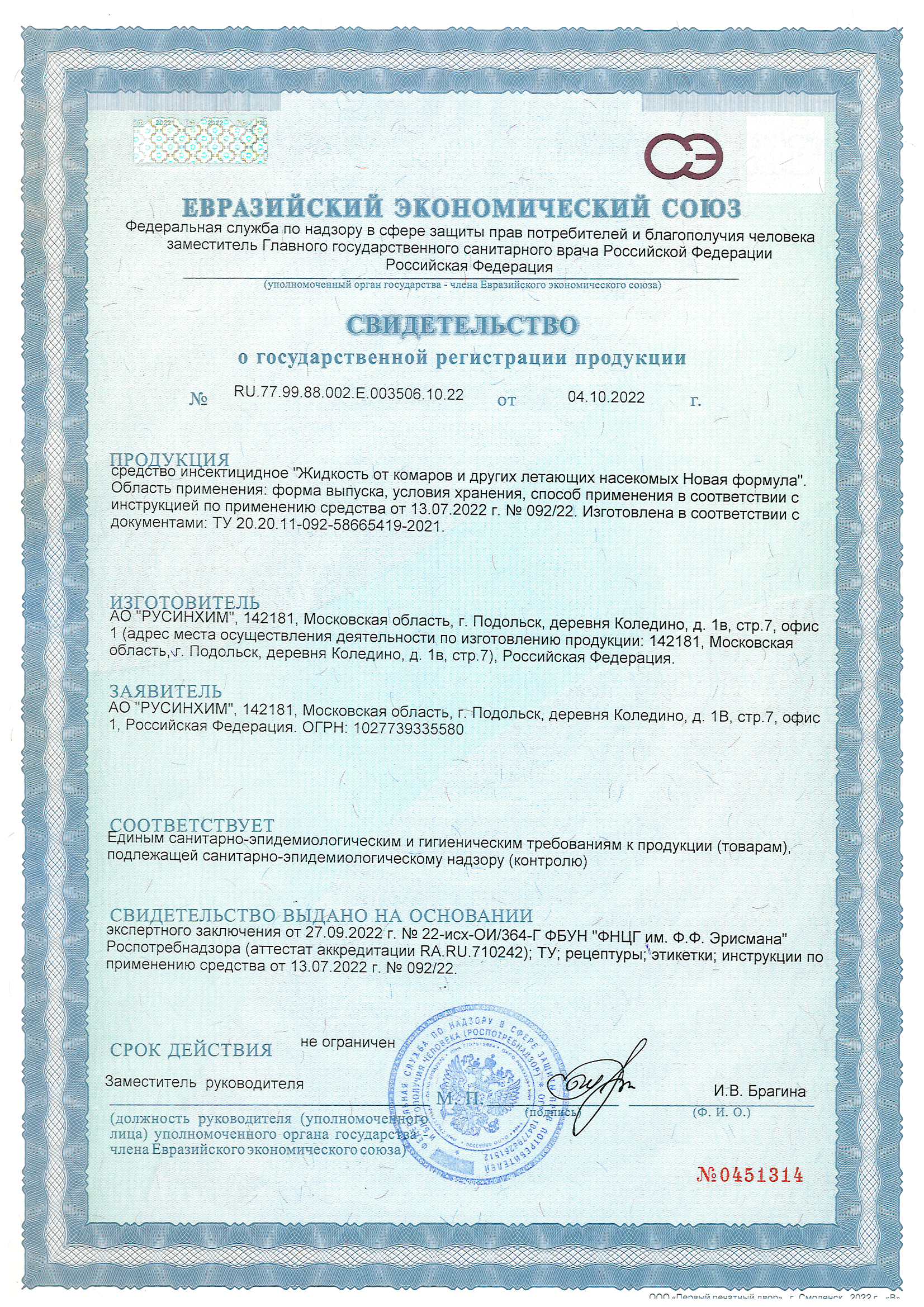 Срок годности: 5 лет с даты изготовления (указана на упаковке).