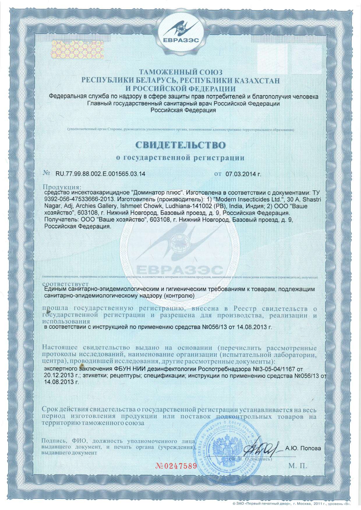 Применение: для приготовления рабочего раствора препарат следует развести водой и тщательно перемешать. Препарат разводят из расчёта: для уничтожения тараканов и клопов 10 мл препарата на 0,5 л воды, для муравьев, блох, мух и их личинок, комаров и их личинок — 10 мл на 1 л воды.