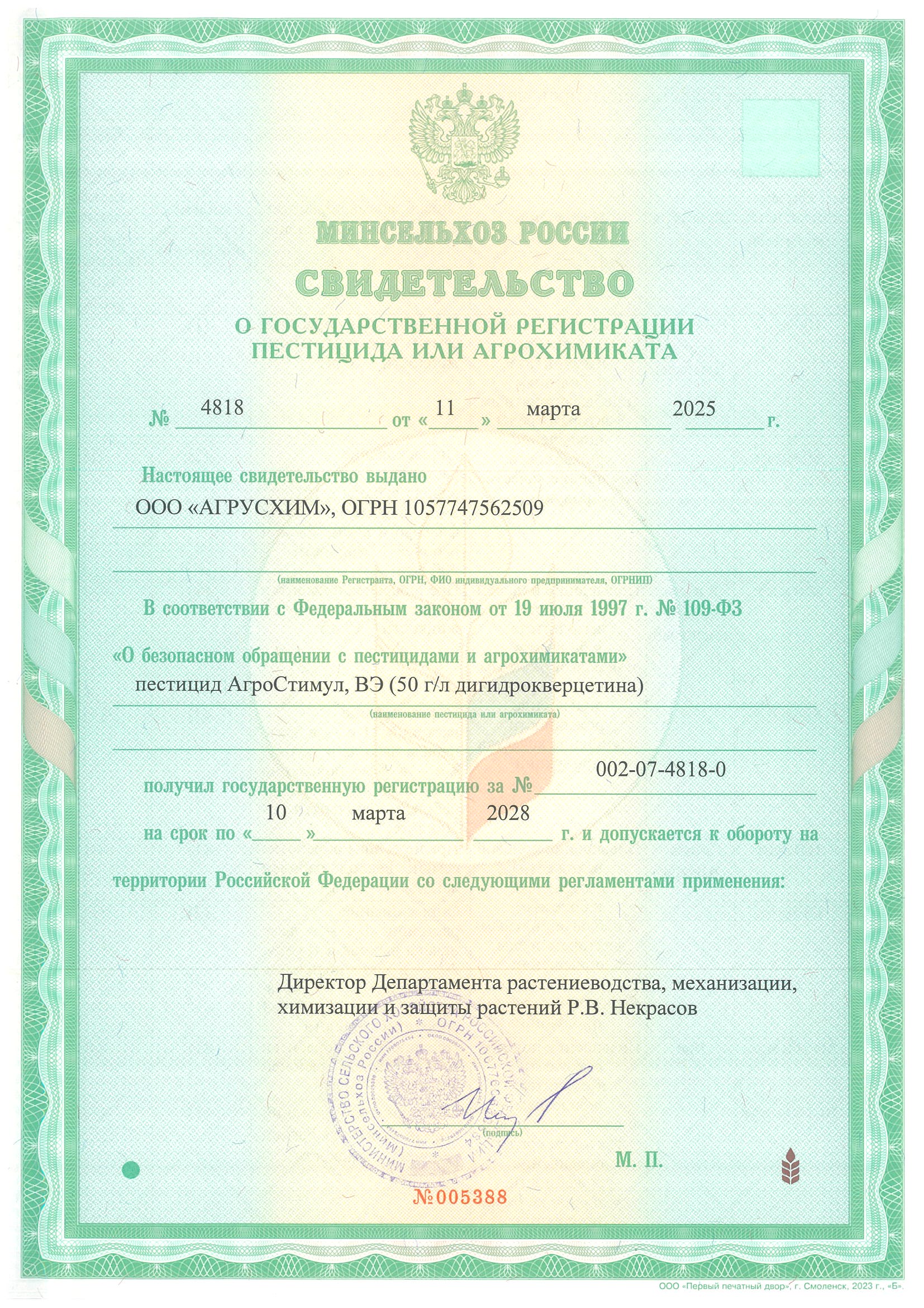 Применяется как при протравливании семенного материала, так и при опрыскивании вегетирующих растений.