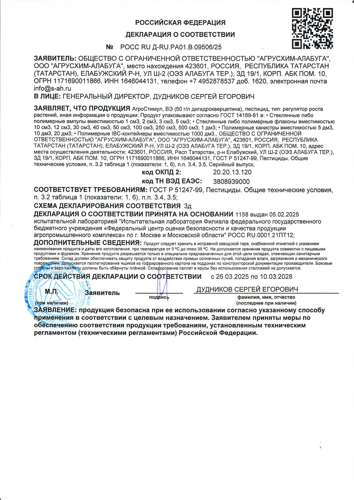 Действующее вещество 50 г/л дигидрокверцетина, срок годности 3 года