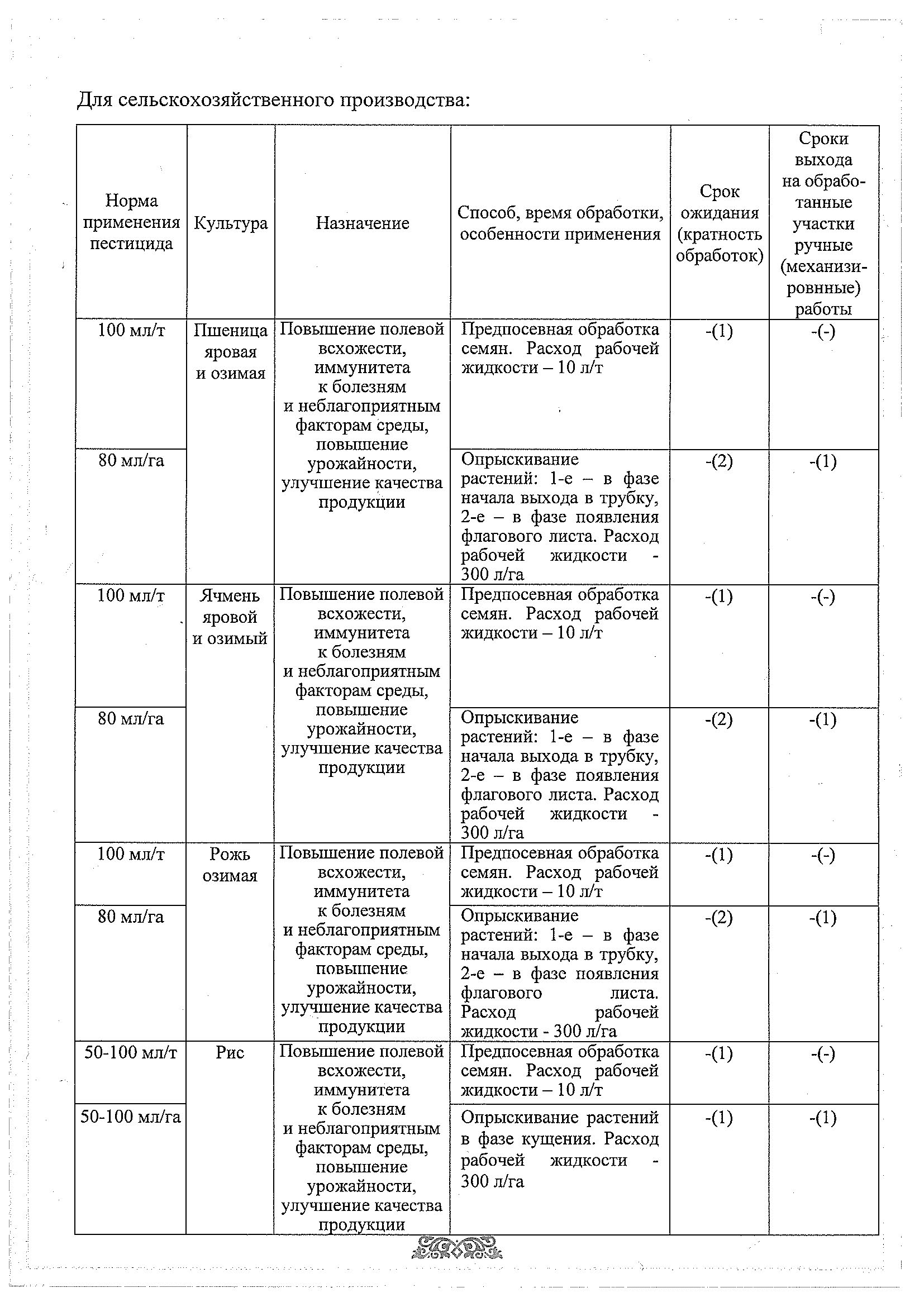 Повышает устойчивость культур к различным стрессам (недостаток влаги, заморозки, механические повреждения, обработка гербицидами и др.).
