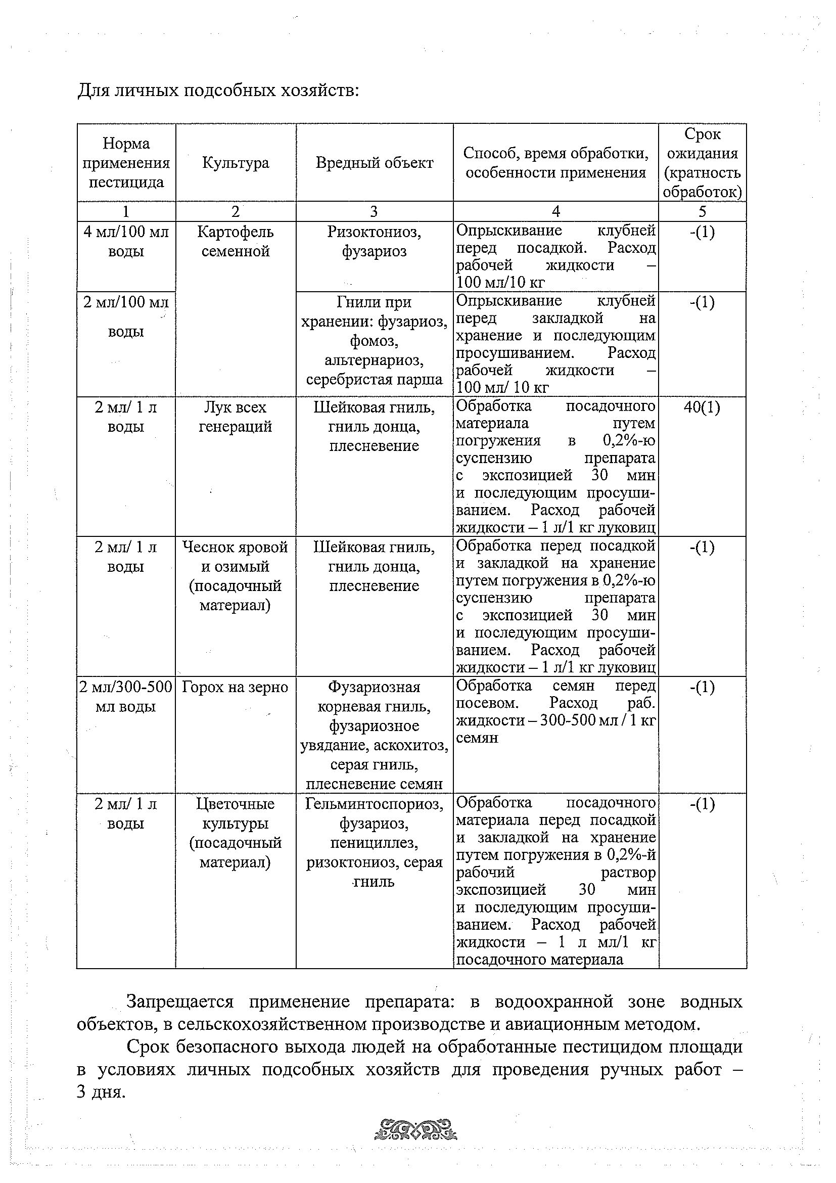 замачивать посадочный материал в течение 30 минут или опрыскивать: