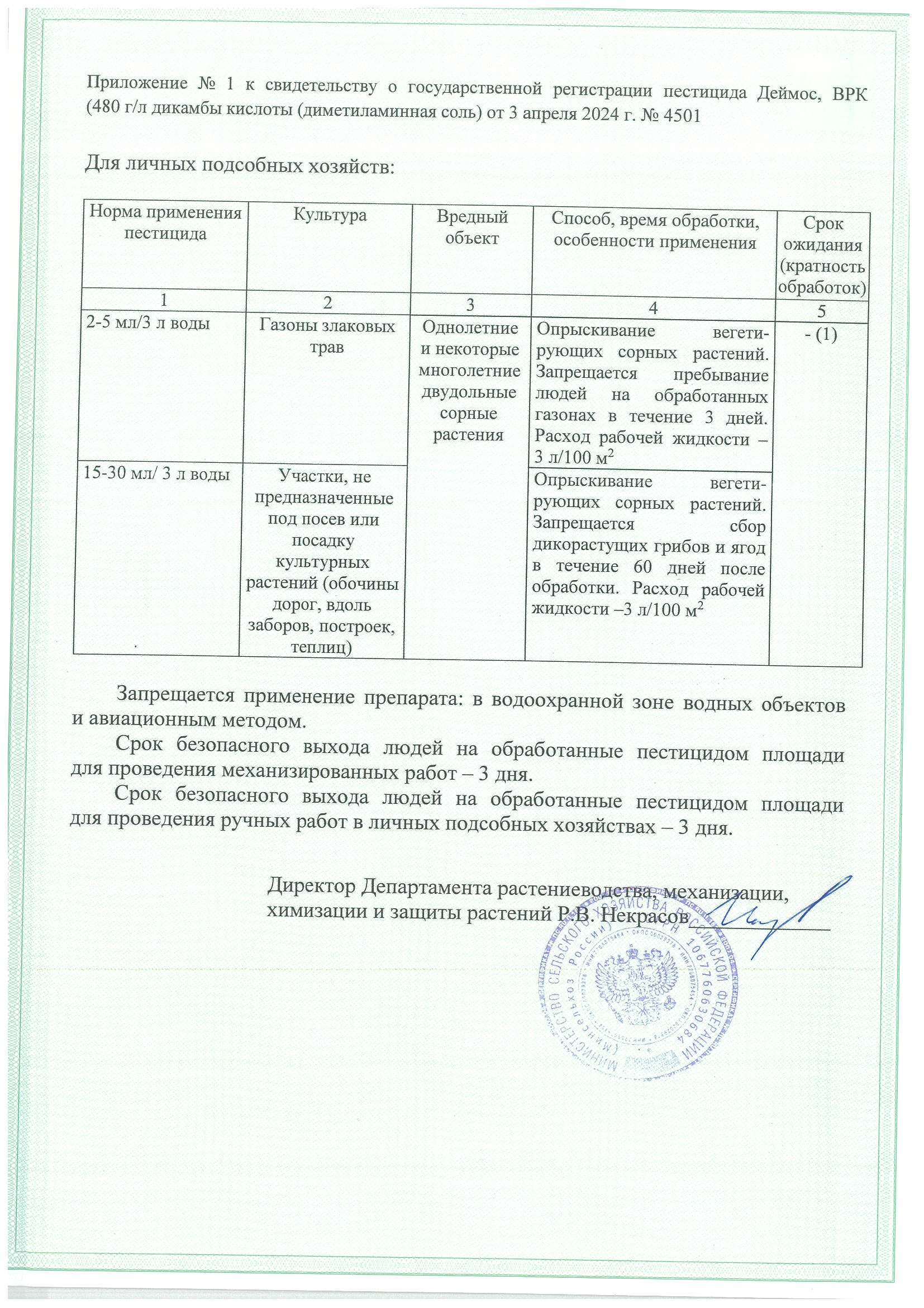 Деймос-Государственная регистрация №021-03-4501-1 от 03.04.24 до 02.04.34 выдана МСХ, Сертификация-декларация №РОСС RU Д-RU.РА01.В.14374/24 от 15.04.24 до 14.04.29 выдана Заявитель: АО Фирма "Август"