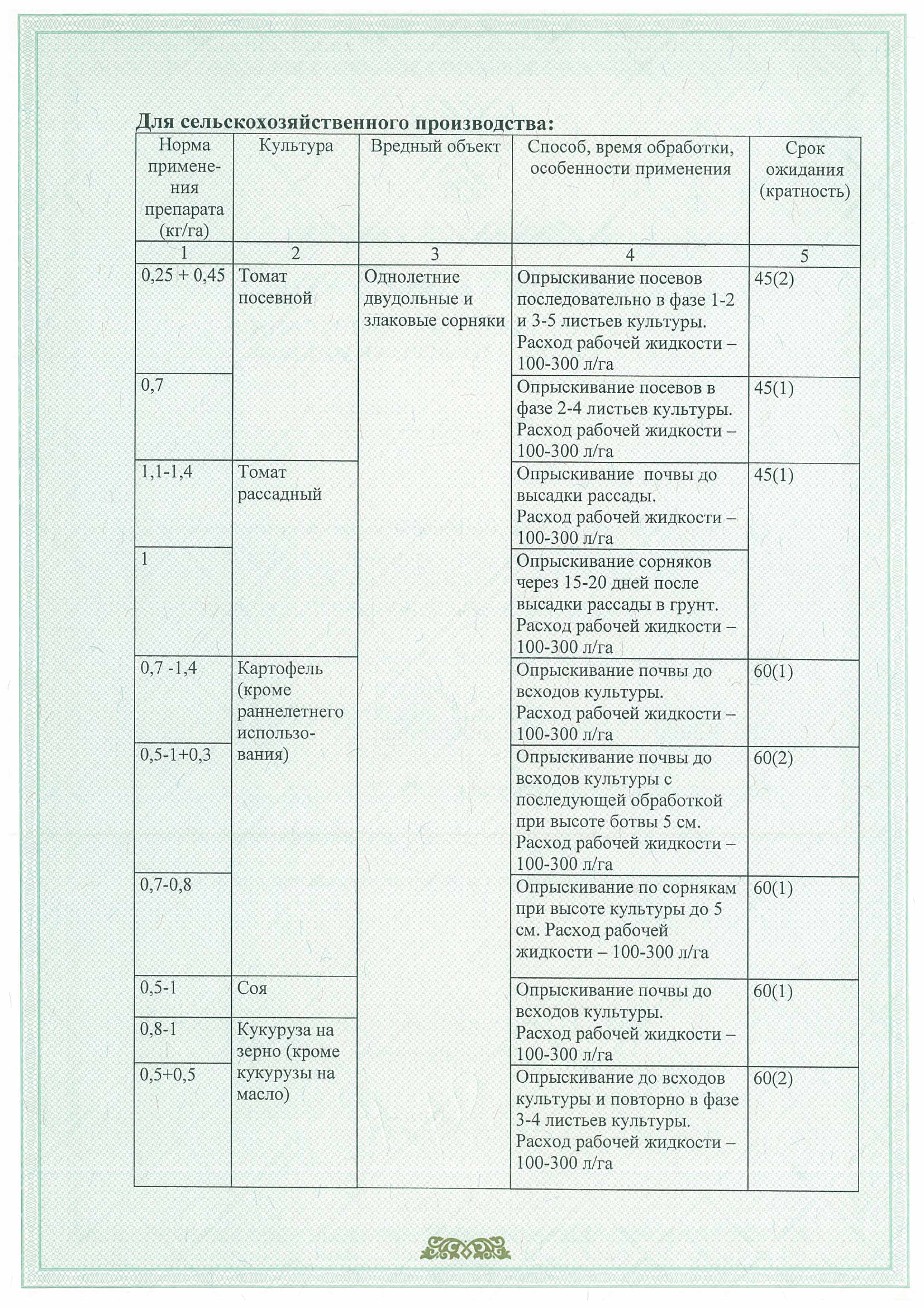 избирательного действия. Основной гербицид для борьбы с однолетними двудольными и злаковыми сорняками на картофеле и зерновых культурах