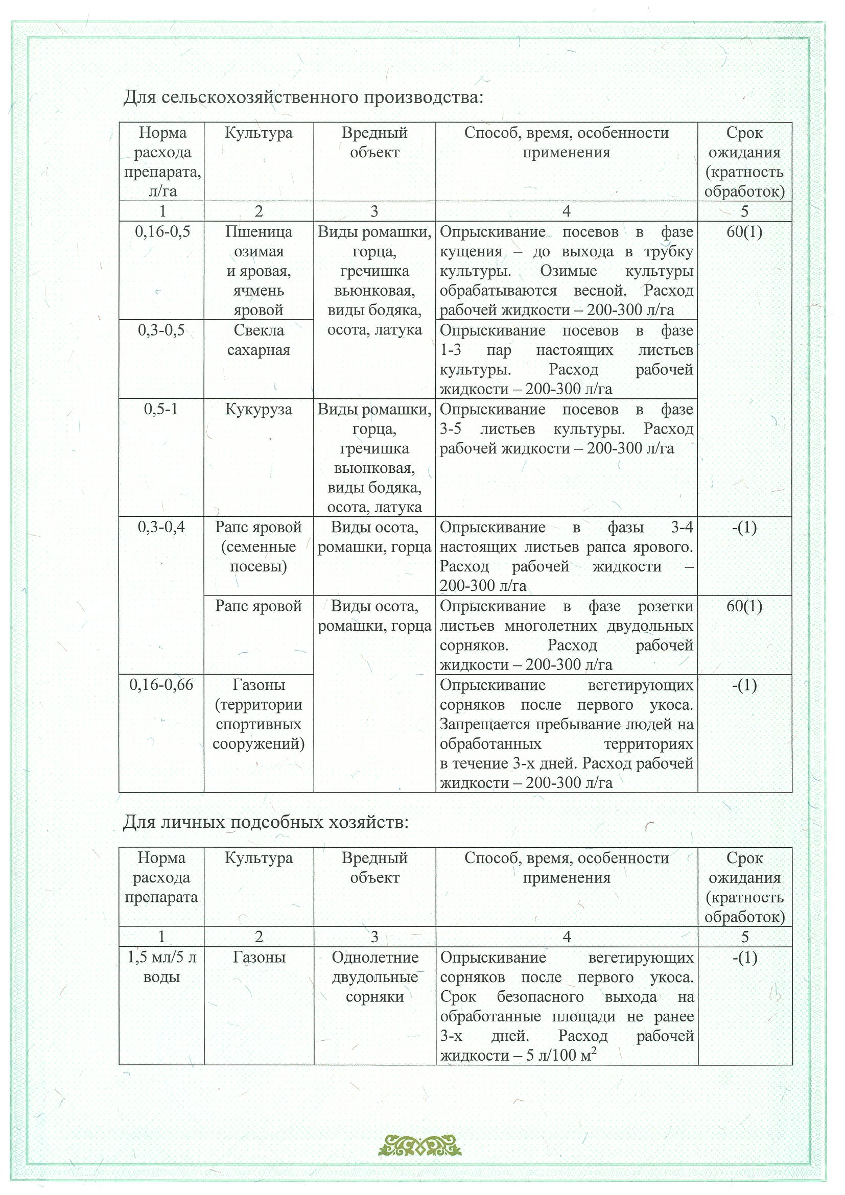 Действующее вещество: 300 г/л клопиралида. Срок годности 3 года.