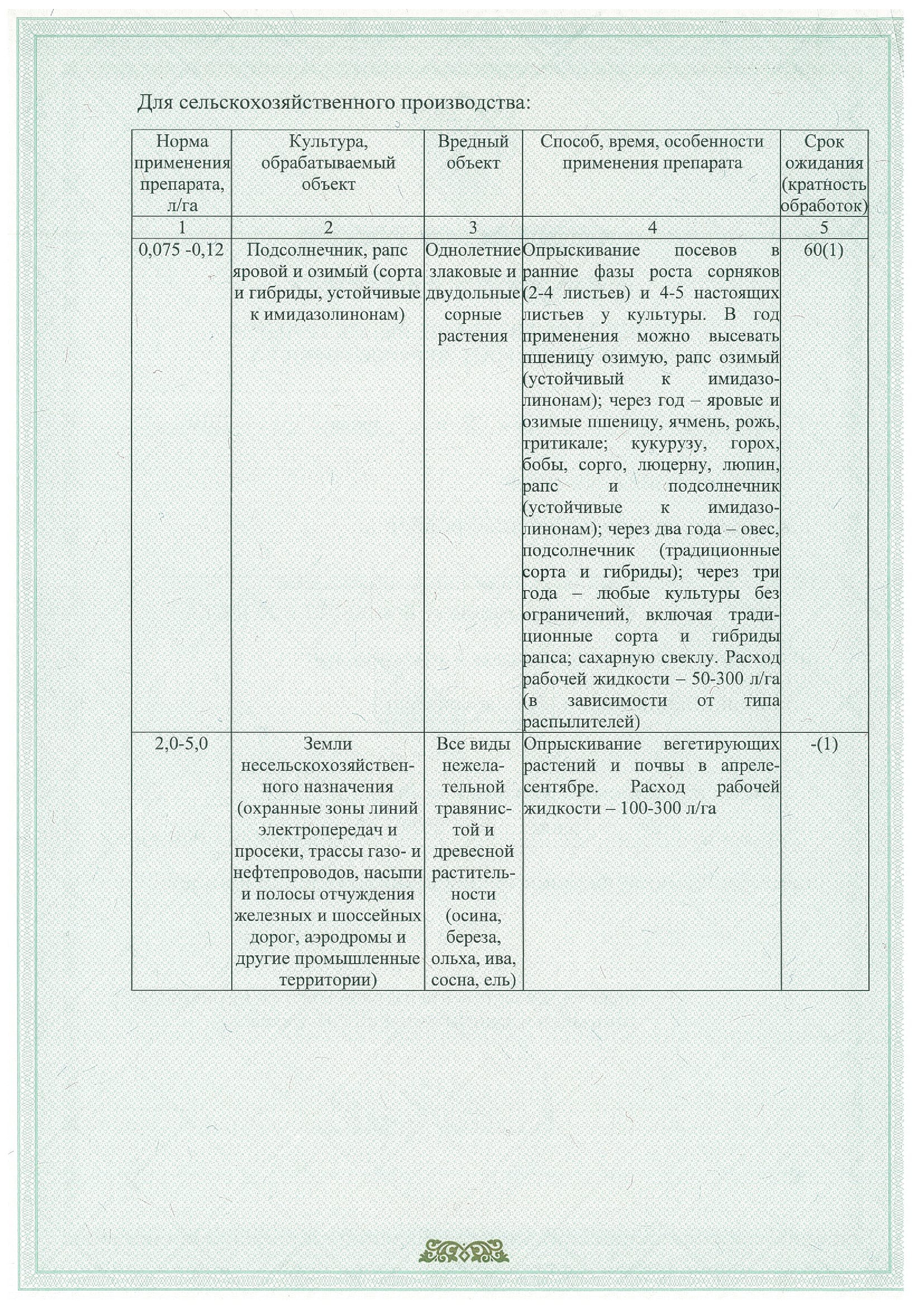 -применение на сортах и гибридах рапса и подсолнечника, устойчивых к имидазолинонам