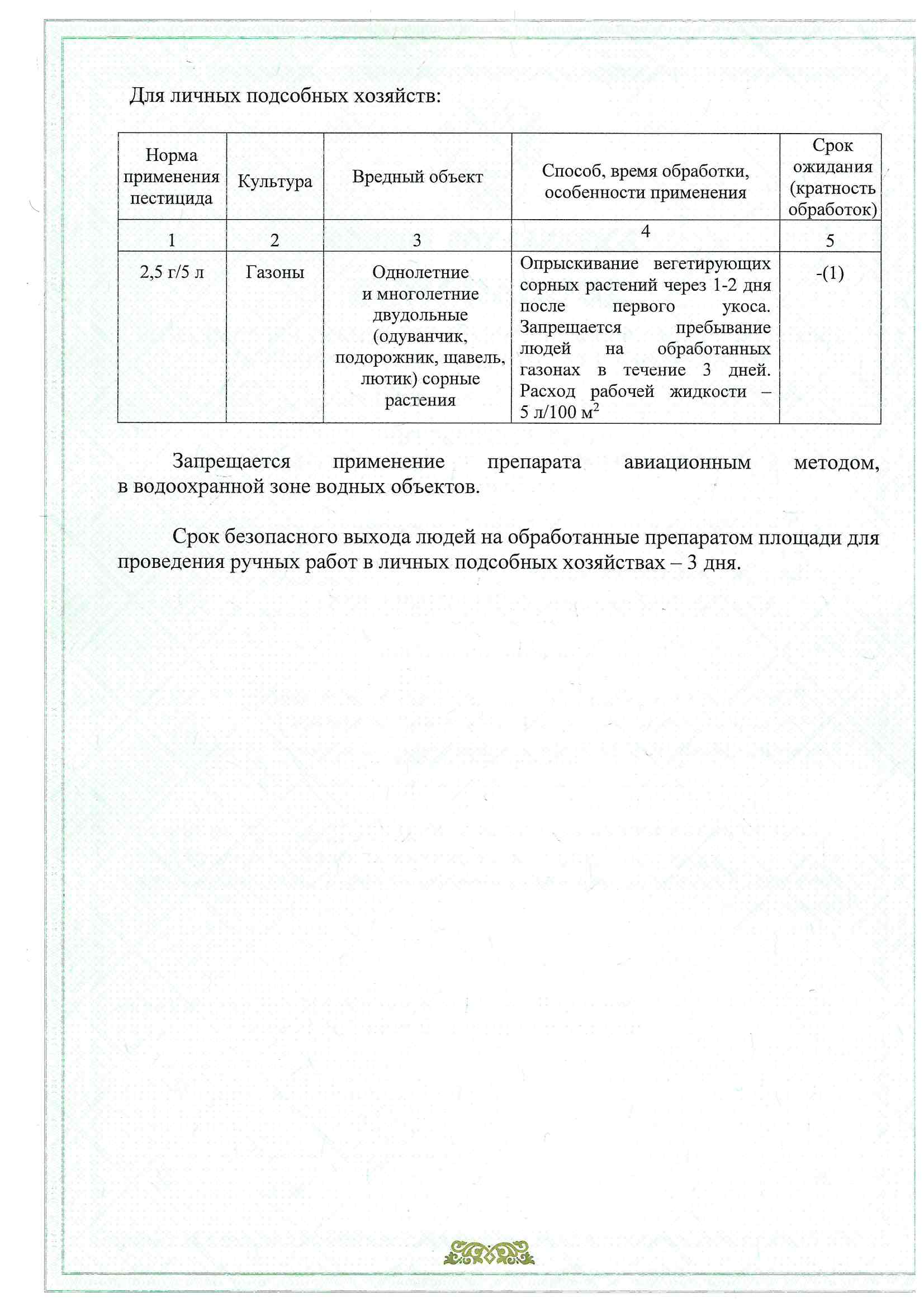 Подавляет рост сорняков: одуванчик, лютик, подорожник, щавель и др. виды не повреждает злаковые газонные травы.